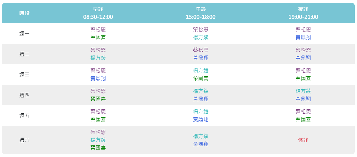 | 週日固定休診 |